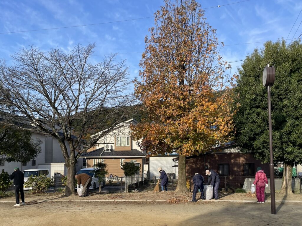 23日には三田洞自治会の皆さんが三田洞広場付近を中心に清掃を実施し、落ち葉の収集や公園周辺のごみ拾い、歩道の整備など細かな作業まで丁寧に取り組まれました。